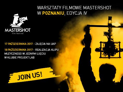 Na mapie filmowej jesieni w Poznaniu po raz kolejny pojawią się WARSZTATY FILMOWE MASTERSHOT. Tym razem zadanie warsztatowe polegac bedzie na produkcji klipu muzycznego w jednym ujęciu. Wydarzenie odbywające się w ramach MASTERSHOT FILM FESTIVAL, wspiera centrum PISOP, a projekt jest dofinansowany ze środków budżetu Miasta Poznania.