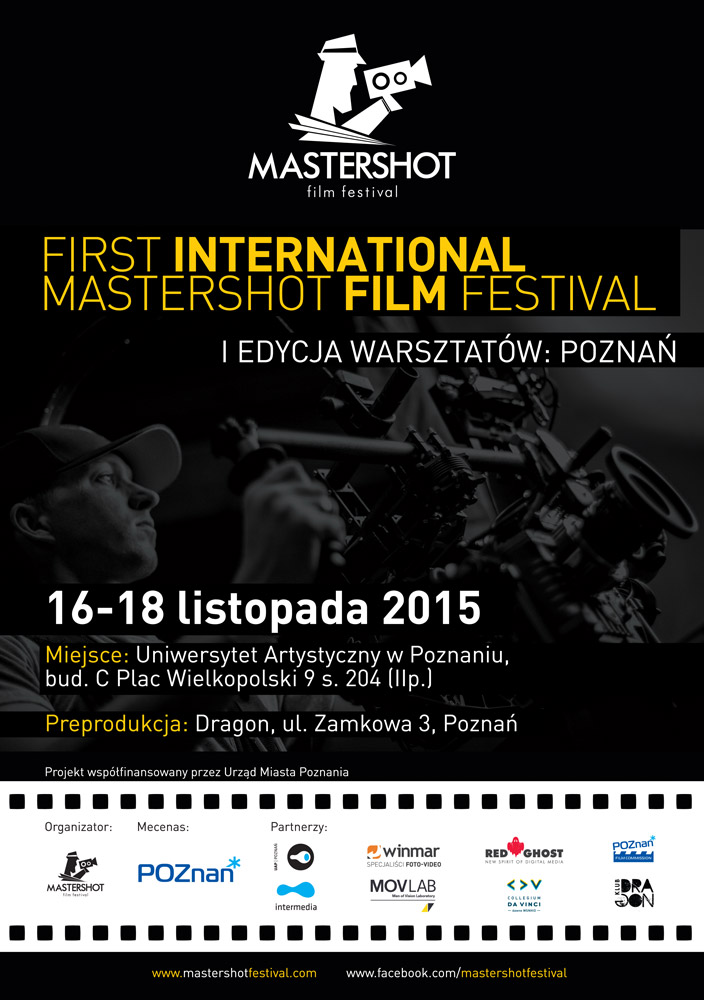 Właśnie zaczyna się w Poznaniu I edycja Warsztatów Filmowych MASTERSHOT, które  mają na celu przybliżenie idei mastershota pasjonatom związanym z  filmem. Zajęcia zostały zaplanowane na trzy dni. Podczas dwóch pierwszych dni (16 i 17 listopad 2015 r.) prowadzący Paweł Czarkowski opowie o podstawach pracy na planie filmowym. Zajęcia teoretyczne odbywają się na UAP w budynku C. na Pl. Wielkopolskim 9, sala 204 od godz. 17.00.